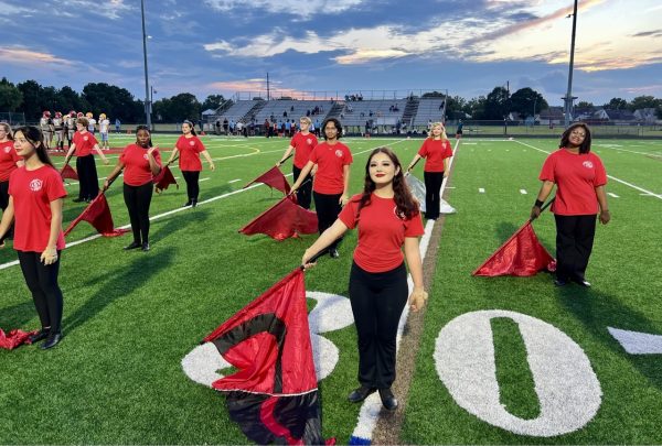 The marching band Color Guard is a combination of dance and equipment work, which includes flags and rifles. Color Guard interprets the band’s music, serves as the visuals on the field, and conveys a mood or a story.